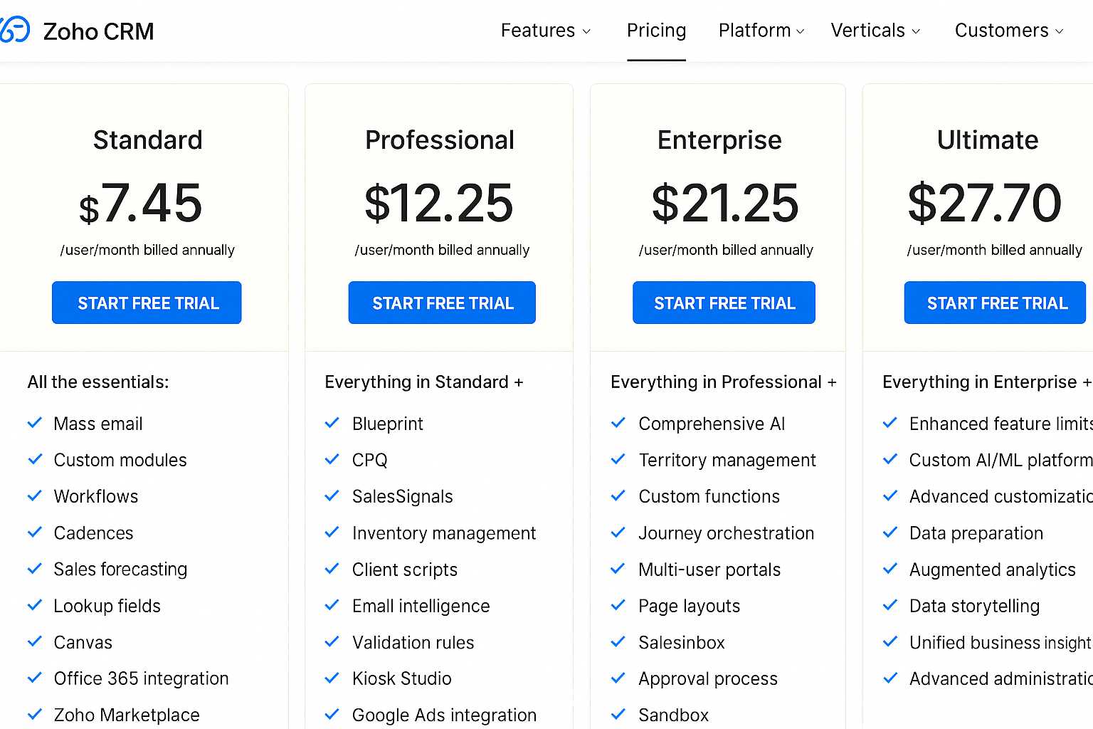 Zoho presents a wide staircase of plans, designed so that every business may step onto the ladder of growth.