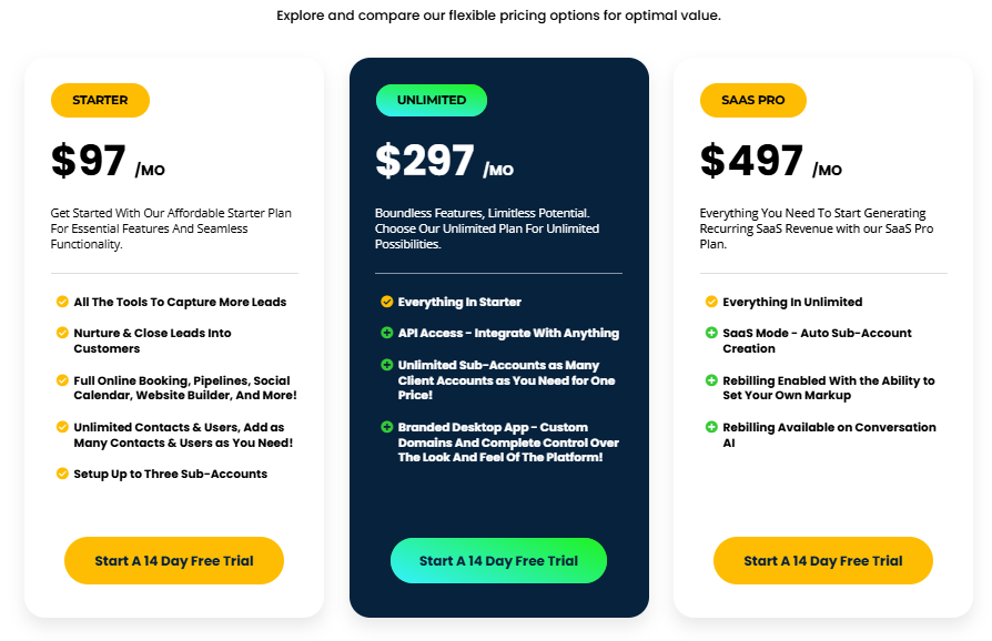 GoHighLevel Pricing- Monthly and Yearly Cost